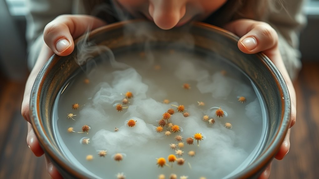 For ongoing comfort, you might add a humidifier to your room to keep air moisture levels balanced throughout the day. You can enhance your steam therapy by adding 2 tablespoons of dried chamomile flowers per 4 cups of boiling water for additional aromatherapy benefits.