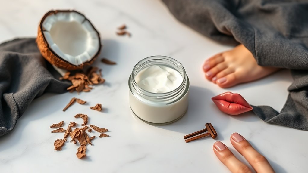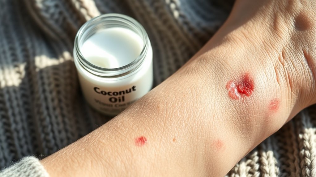 Store coconut oil at room temperature so it stays soft and easy to apply whenever you need quick relief. For enhanced effectiveness, you can combine coconut oil with beeswax or calendula in homemade salve recipes that offer additional skin barrier repair benefits.