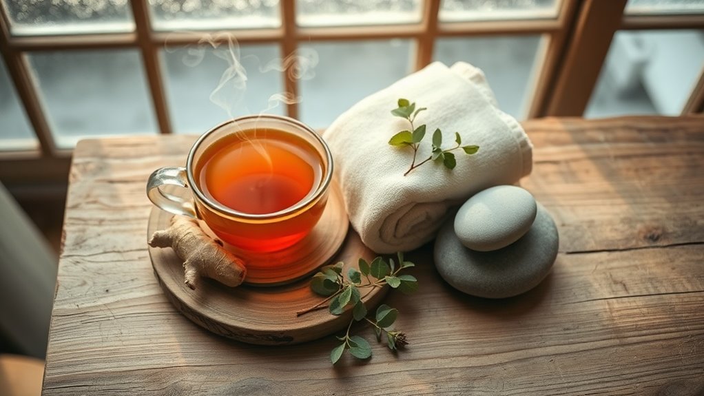 You’ll protect temporomandibular joints by maintaining facial warmth through scarves and thermal headgear that prevent involuntary muscle contractions. Implement stress-reduction techniques—deep breathing, meditation, yoga—to eliminate unconscious jaw clenching behaviors.